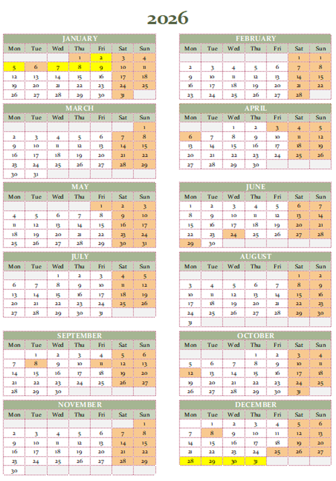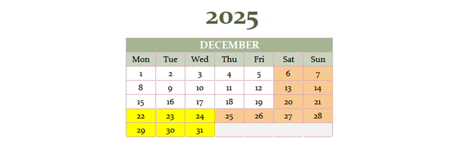 Here you can see which days we have limited support in the office because of vacation days and public holidays when the office is closed.